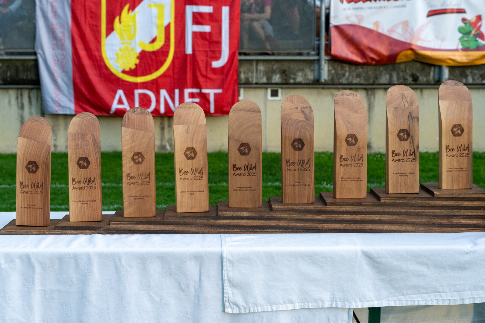 Bei der Schlussveranstaltung des 25. Bundes-Feuerwehrjugend Leistungsbewerbs in Weiz wurden an alle Bundesländer Miniaturen-Avards vom BeeWild-Initiator Manfred Hohensinner übergeben.