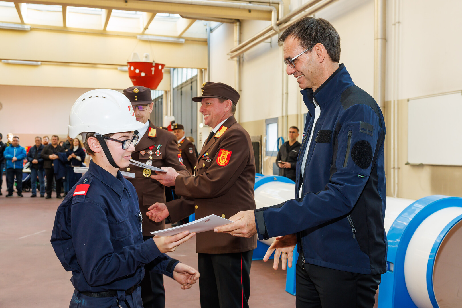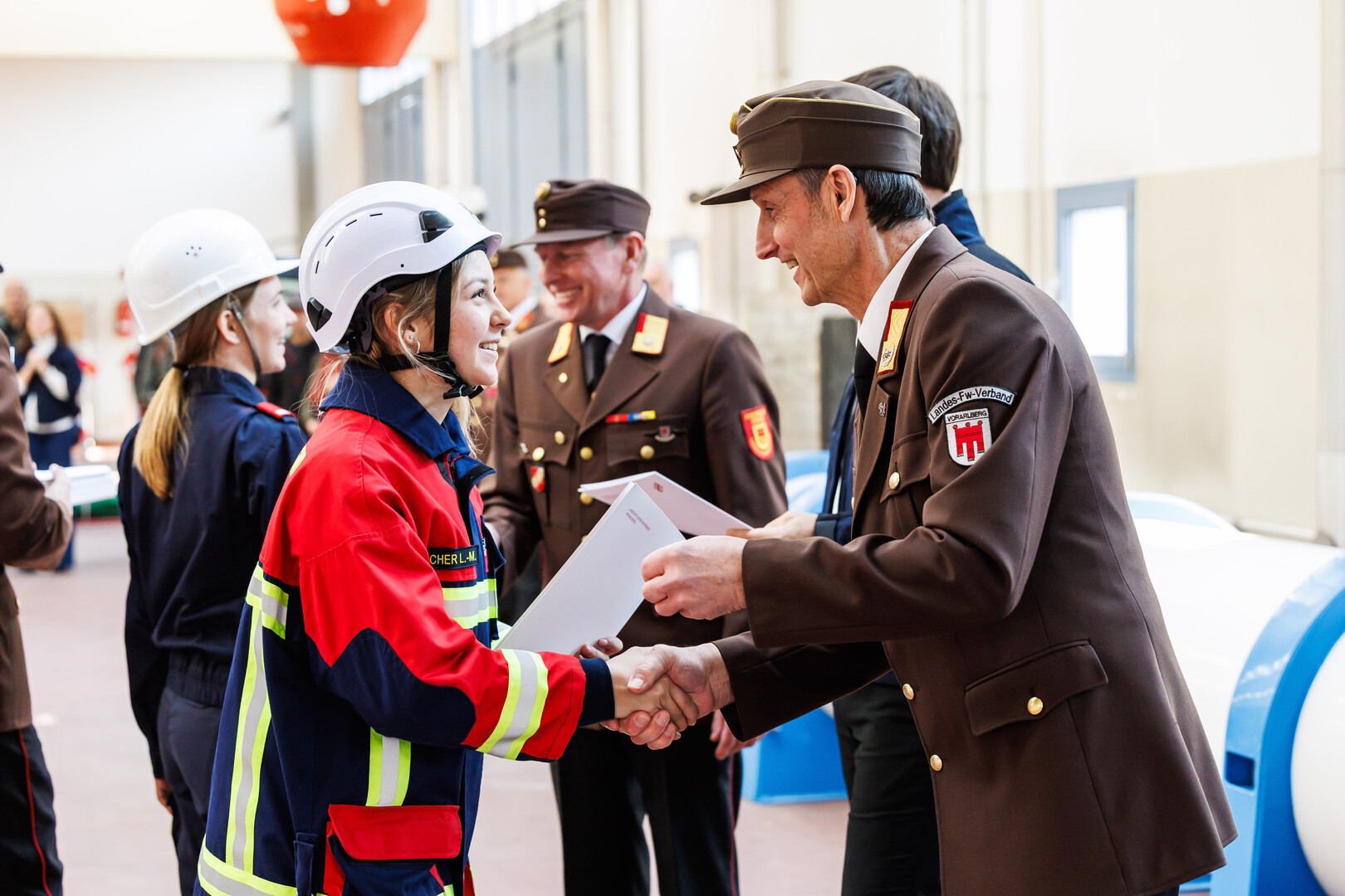 Bei der Siegerehrung, bei der alle 49 Jugendlichen das höchste Leistungsabzeichen entgegennehmen konnten, waren zahlreiche Ehrengäste anwesend. Der Landesjugendreferent aus Vorarlberg Oliver Berger überreichte gemeinsam mit Landeshauptmann Markus Wallner und Landesfeuerwehrinspektor Herbert Österle die goldenen Abzeichen. Die Bezirksfeuerwehrinspektoren und zahlreiche Kommandanten gratulierten den Jugendlichen zu ihrem Erfolg.